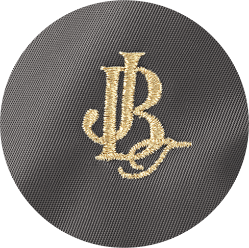 シンプルなスクエアデザインにゴールドのロゴ刺繍が