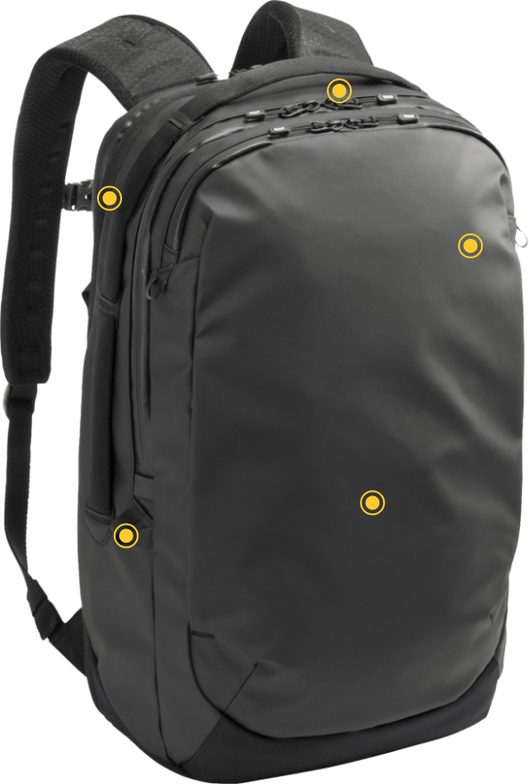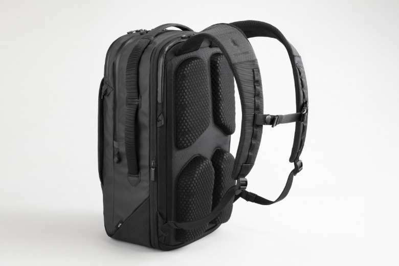 凹凸クッションで通気性を確保しつつ接地面を縮小。通気孔付きメッシュのショルダーパッドでムレを軽減。人間工学に基づいた新形状ハーネスで快適なフィット感を実現。