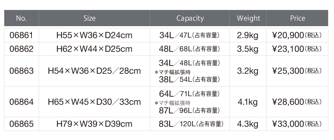 ● 表記のサイズは、ハンドルやキャスターをなどの付属部分を含む最も外側の寸法です。