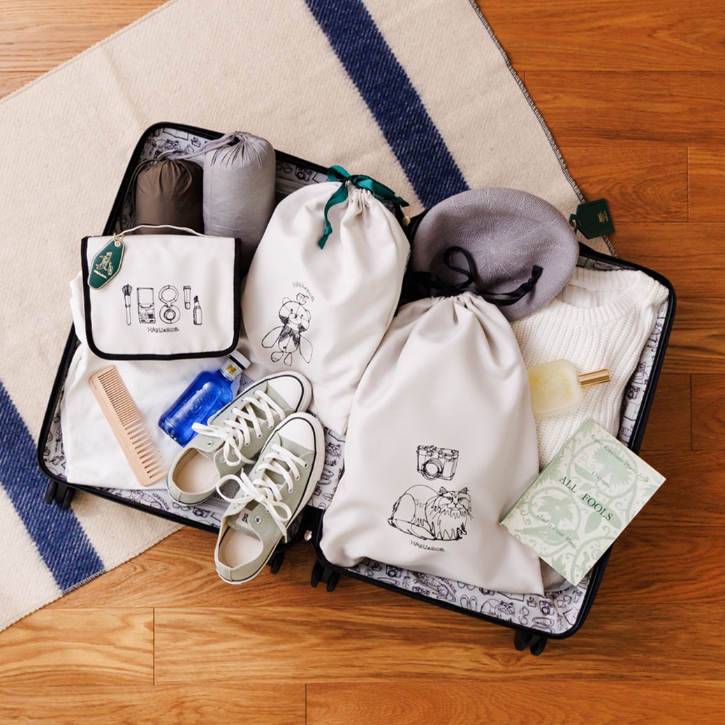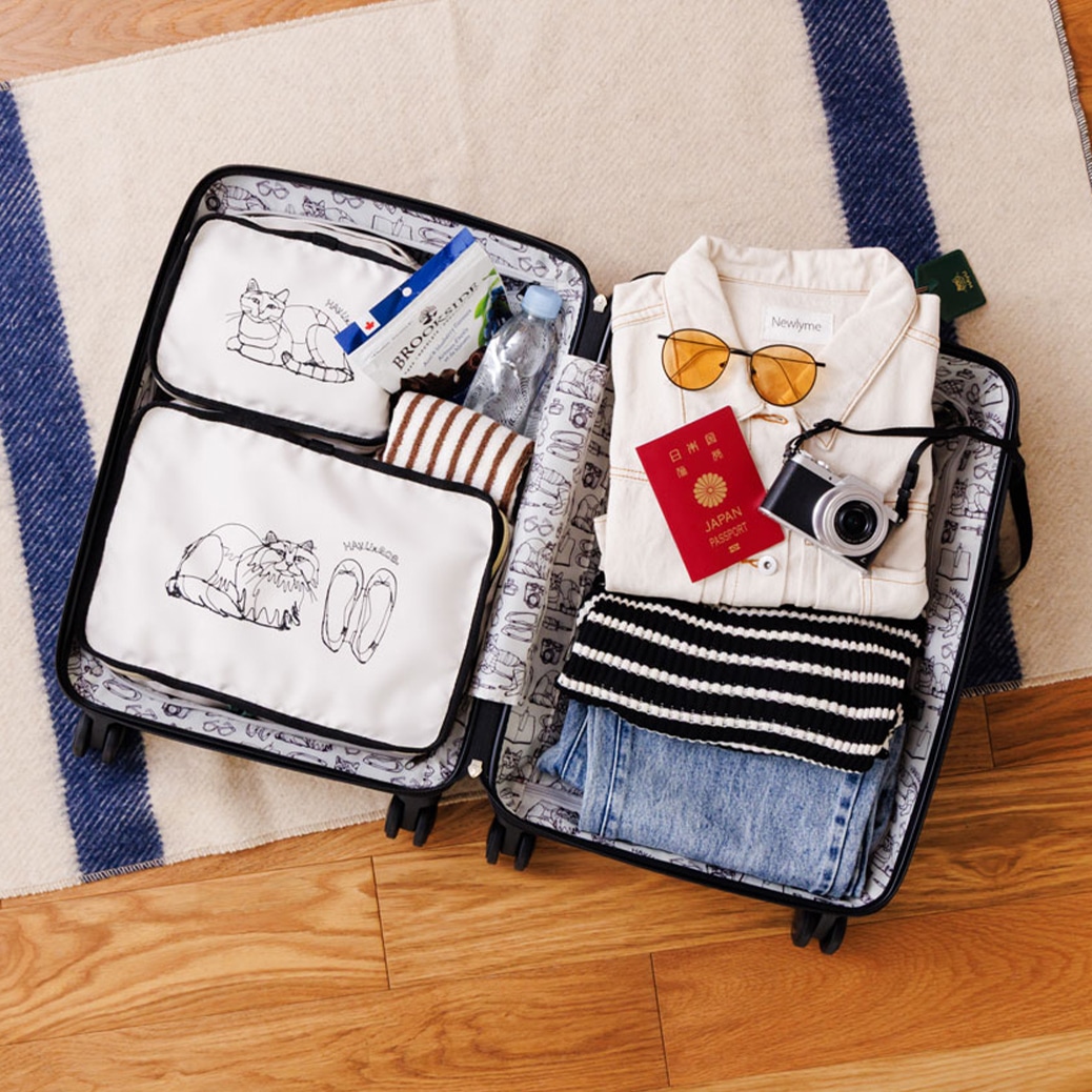 ネコとトラベルアイテムがちりばめられた内装は開ける度に旅行気分を盛り上げます。