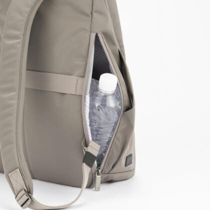 サイドにもボトルや折りたたみ傘を収納できる大容量のポケット。