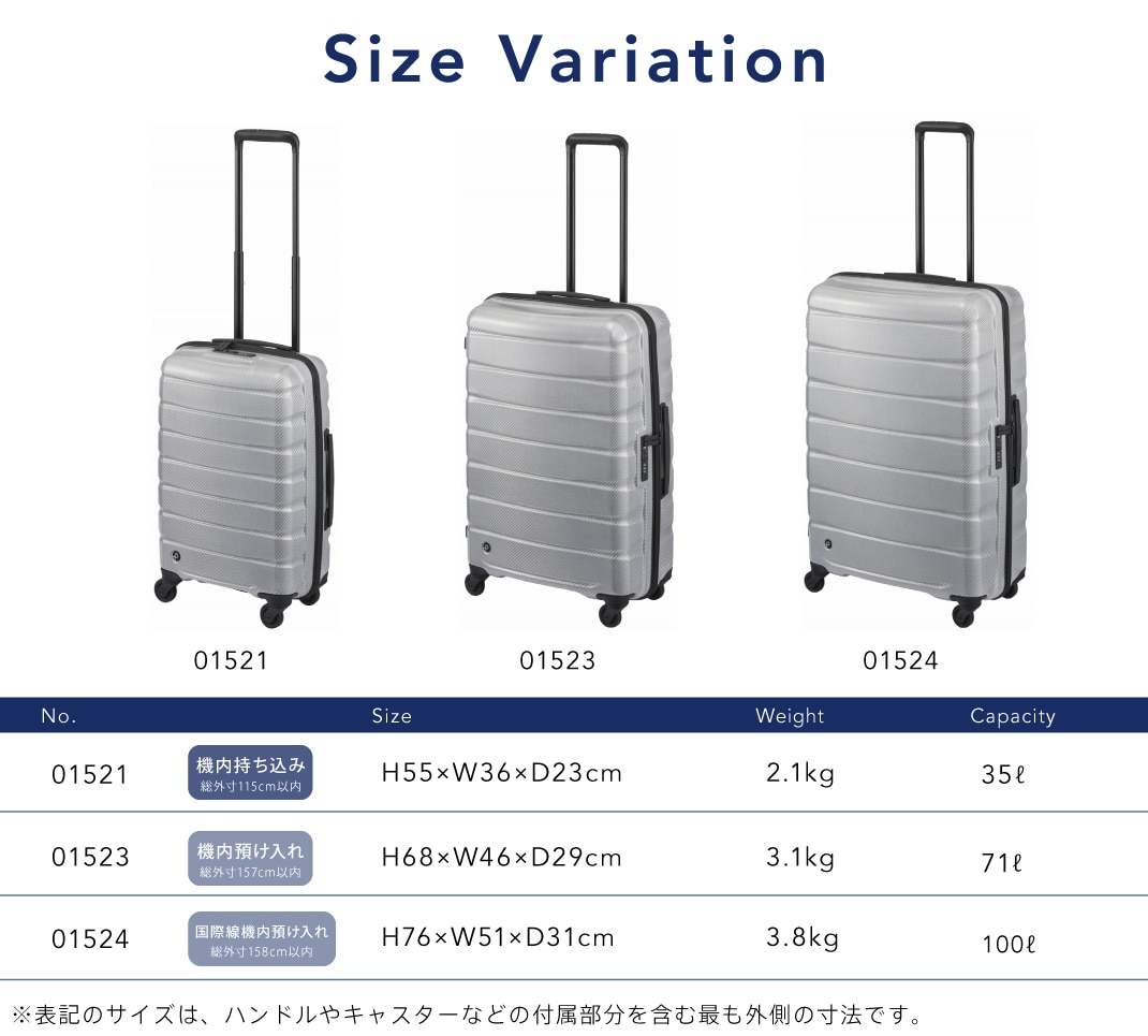 ※No.01021は、機内持込み可(国際線・国内線100席以上の航空機に対応/各航空会社により規定が異なる場合があります。)。