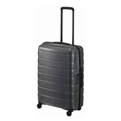 - 手元のスイッチで簡単に車輪を固定できる独自開発・特許取得の「キャスターストッパー®」搭載。揺れる電車の中や、滑りやすい空港ロビー、傾斜のある場所など、さまざまなシーンでその実力を発揮します。