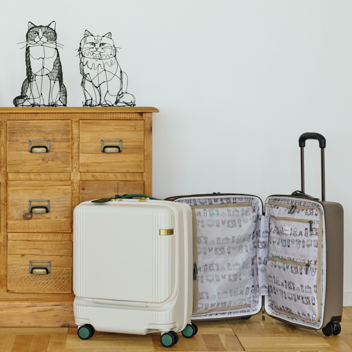 HAyUネコと旅行感たっぷりのアートたちが広がるパッキングがもっと楽しくなるスーツケースです。
