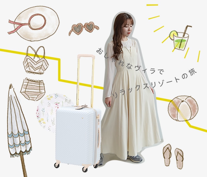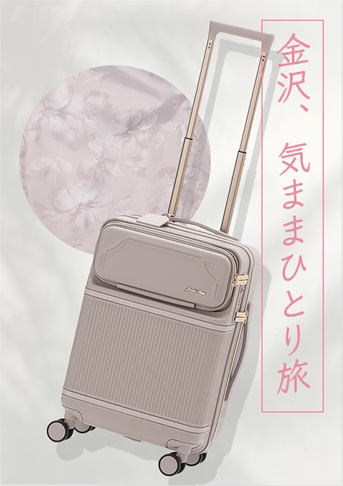 My Choice! HaNT×Jewelna Rose MサイズHaNT×Jewelna Roseのコラボスーツケースは、アガル内装やファッションに合わせやすいカラーリングだけでなく、マチが広がるエキスパンド仕様。行きは身軽にコンパクトに、帰りはショッピングした荷物がたくさん入るのがお気に入り!