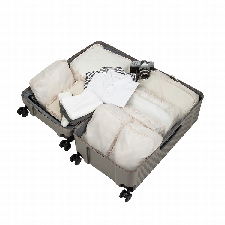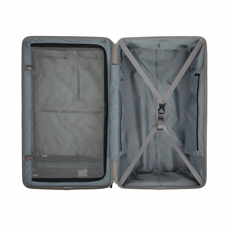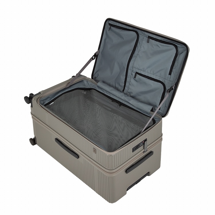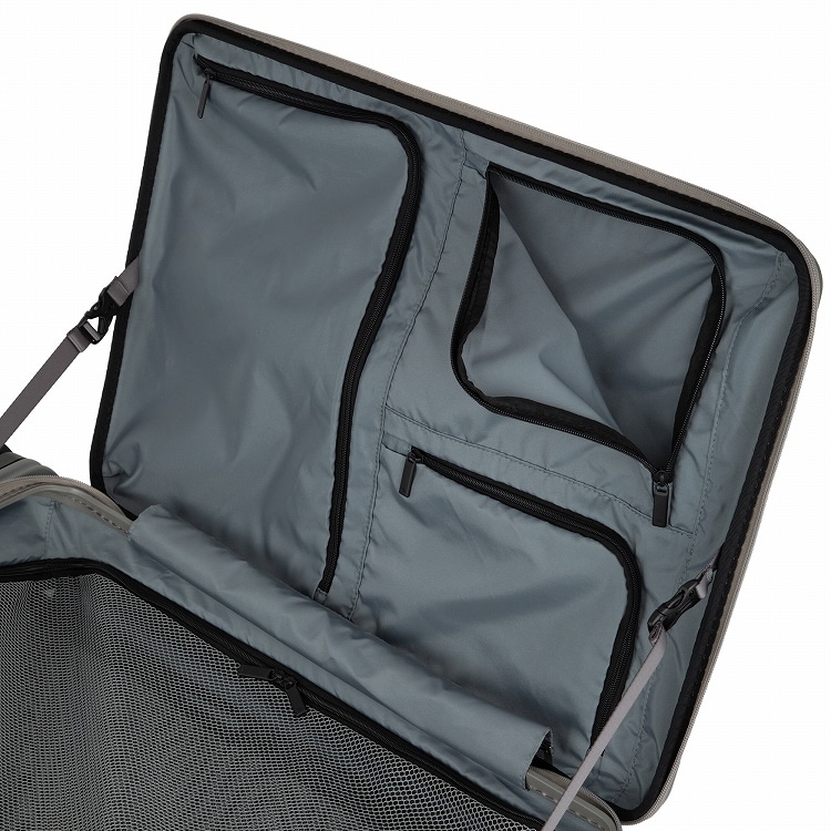 通常のスーツケースの様に両面にパッキング出来るだけでなく、フロントオープンポケットを開閉し、1気室のケースとして使用することも可能。