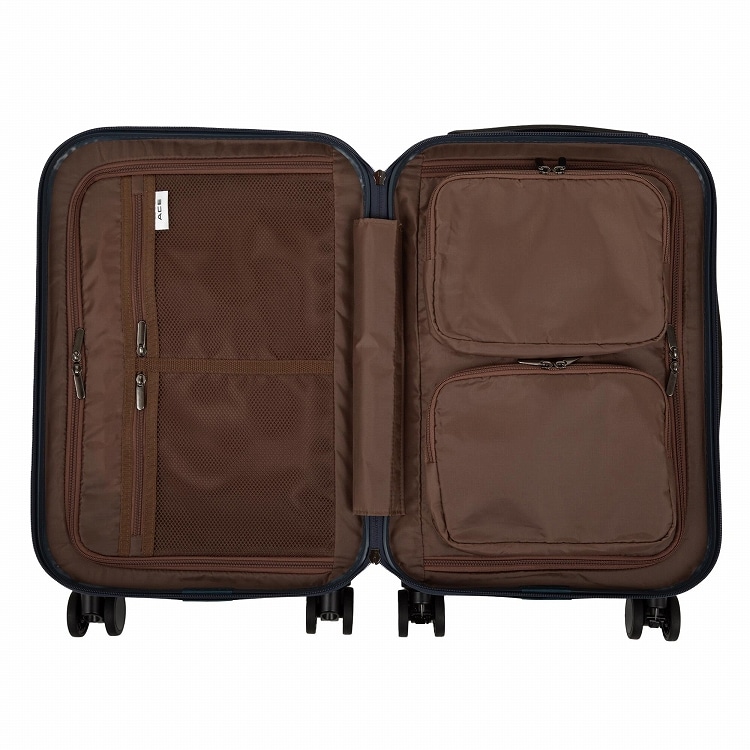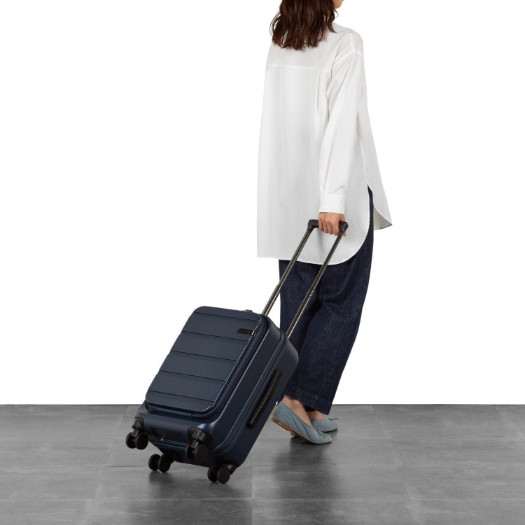 4輪/双輪キャスター/TSダイヤルファスナーロック/フロントオープン/国内100席以上・国際機内持込み/キャスターストッパー