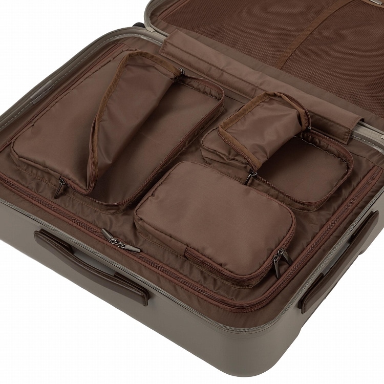 - スーツケース内部には引手のないジッパー部分がございます。こちらは修理用のメンテナンスファスナーとなり、収納スペースとしてはご利用いただけません。