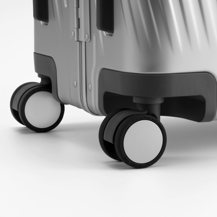 アルミニウムボディを採用し、斜めリブのフェードアウトデザインと走行性に優れた双輪キャスターを備えたフレームタイプのハードサイドゲージ。