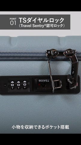 - ※このスーツケース、キャリーケースのTSロックはダイヤルコンビネーションロックです。鍵穴は、TS職員が緊急の際に解錠して検査を行うためのものであり、差し込み式のキーは付属しておりません。