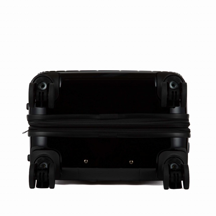 片側のサイドには横にしたときにスーツケースのシェル部分が地面につかないようにするグライド付き。