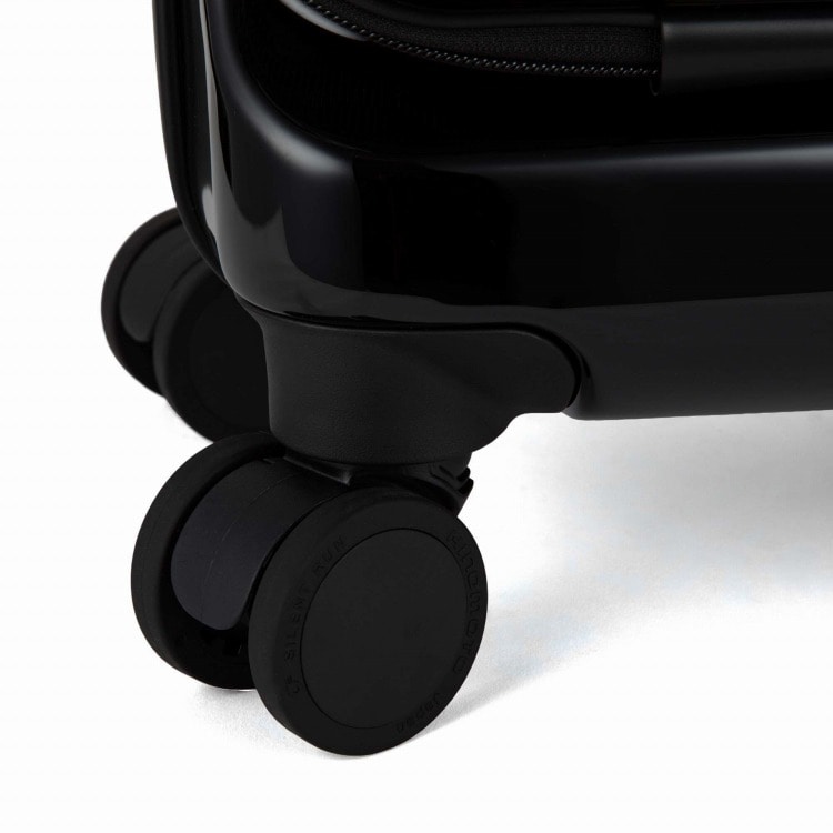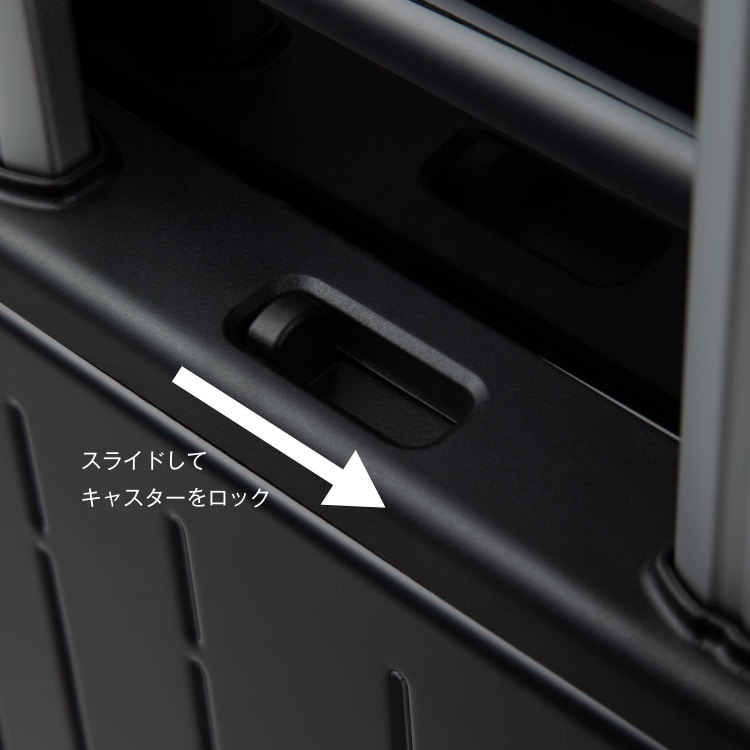 電車内や傾斜で不意のスーツケースの走行を防ぐキャスターストッパーを装備。