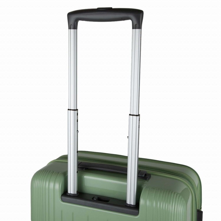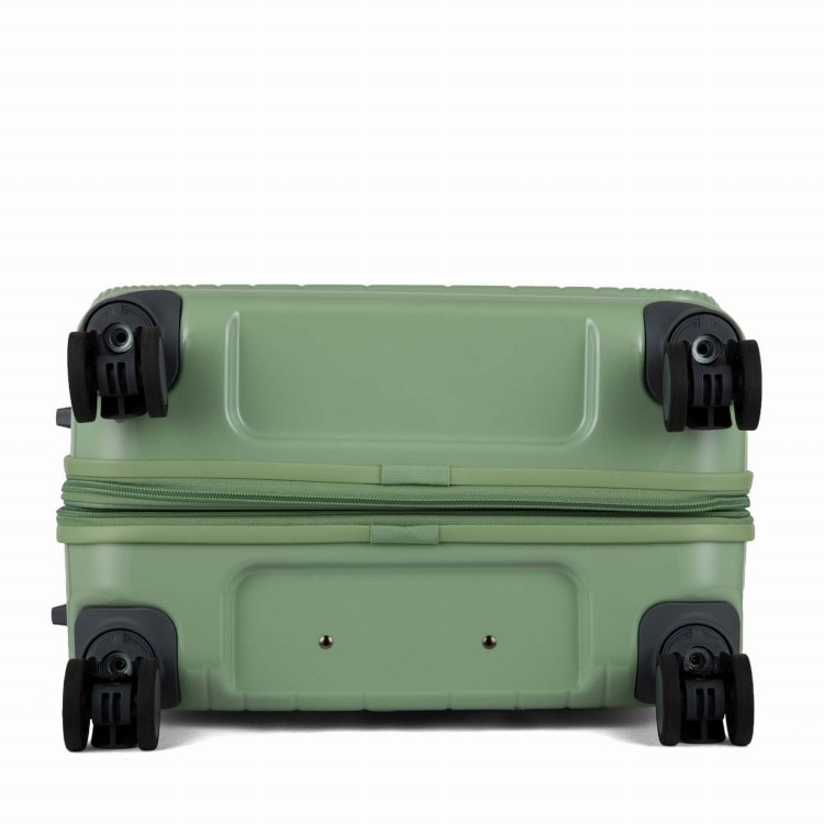 片側のサイドには横にしたときにスーツケースのシェル部分が地面につかないようにするグライド付き。