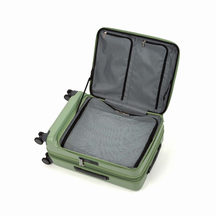 従来のスーツケース通り、中央のファスナーでの開閉も可能。荷物をしっかり収納したい時におすすめ。