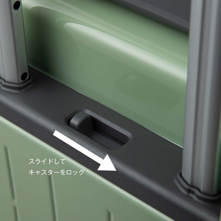 電車内や傾斜で不意のスーツケースの走行を防ぐキャスターストッパーを装備。