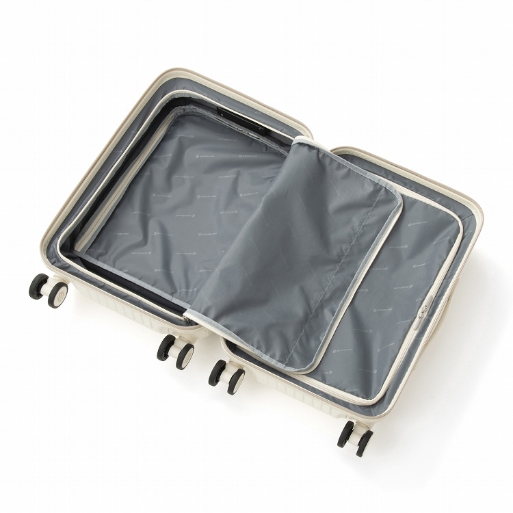 - スーツケース内部には引手のないジッパー部分がございます。こちらは修理用のメンテナンスファスナーとなり、収納スペースとしてはご利用いただけません。