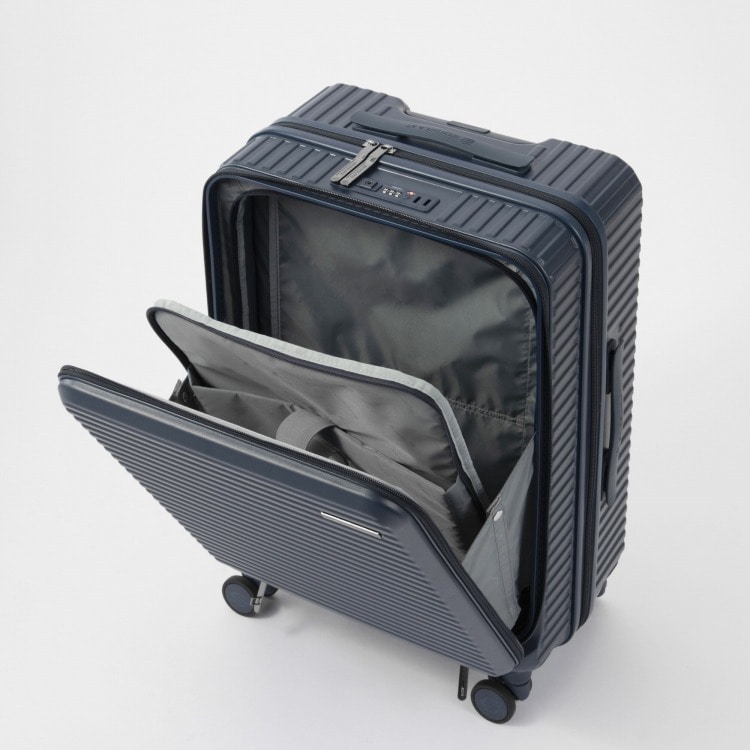 - 機内預け入れ/4輪/双輪キャスター/TSダイヤルファスナーロック/フロントオープン/キャスターストッパー/サイドフック