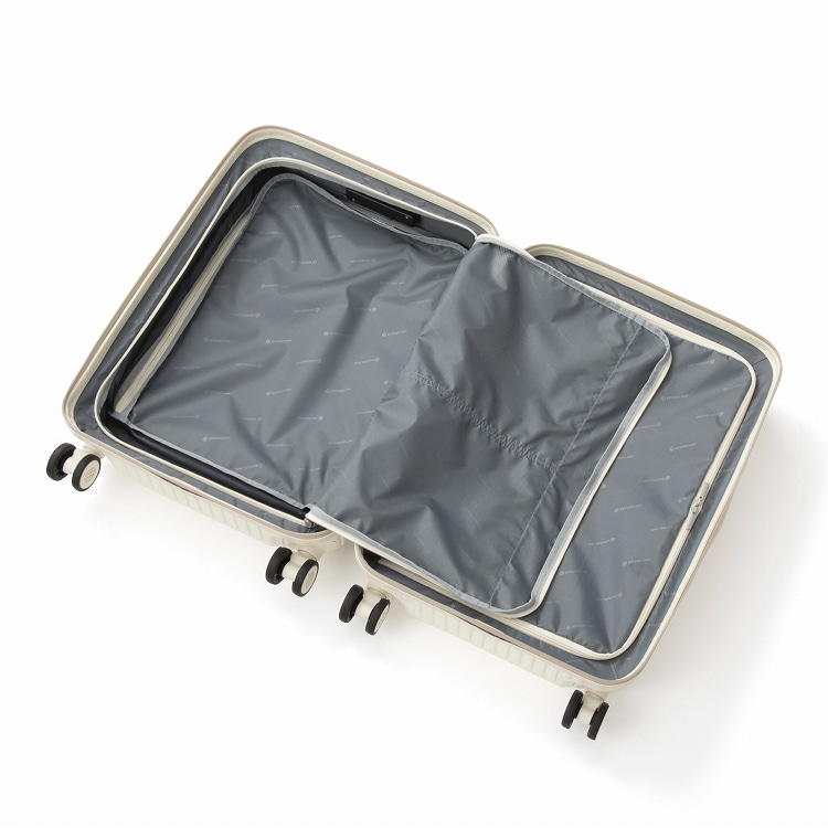 - スーツケース内部には引手のないジッパー部分がございます。こちらは修理用のメンテナンスファスナーとなり、収納スペースとしてはご利用いただけません。