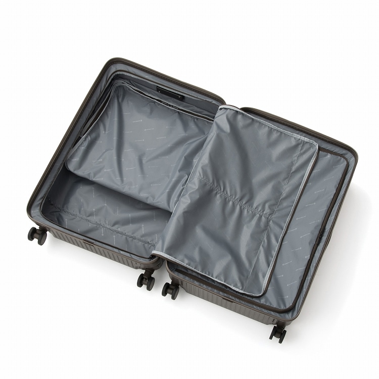 - スーツケース内部には引手のないジッパー部分がございます。こちらは修理用のメンテナンスファスナーとなり、収納スペースとしてはご利用いただけません。