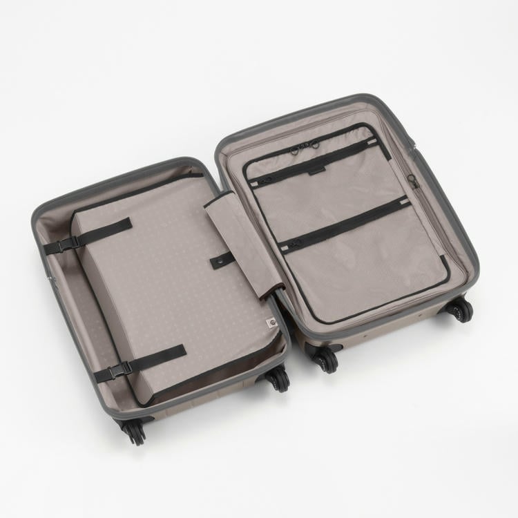 - スーツケース内部には引手のないジッパー部分がございます。こちらは修理用のメンテナンスファスナーとなり、収納スペースとしてはご利用いただけません。