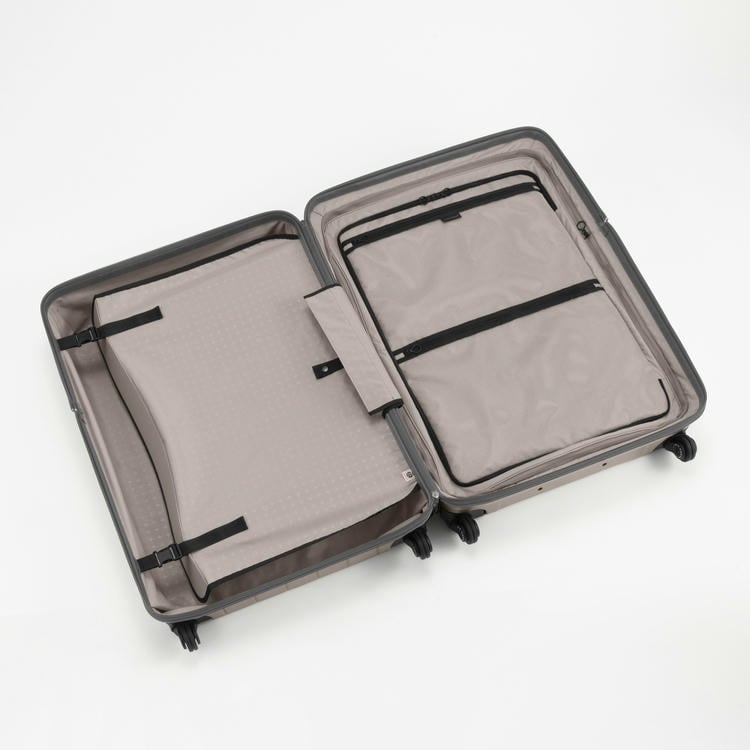 - スーツケース内部には引手のないジッパー部分がございます。こちらは修理用のメンテナンスファスナーとなり、収納スペースとしてはご利用いただけません。
