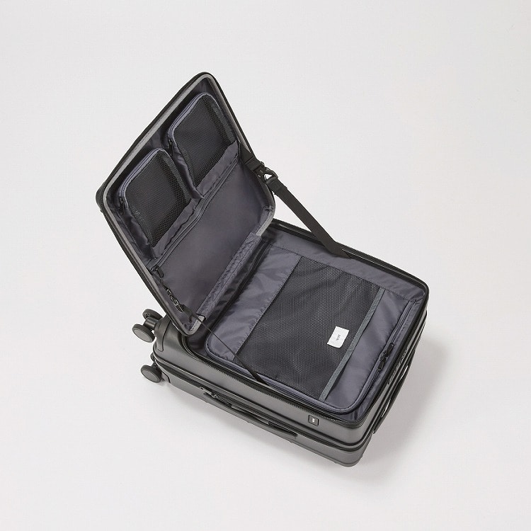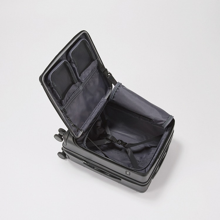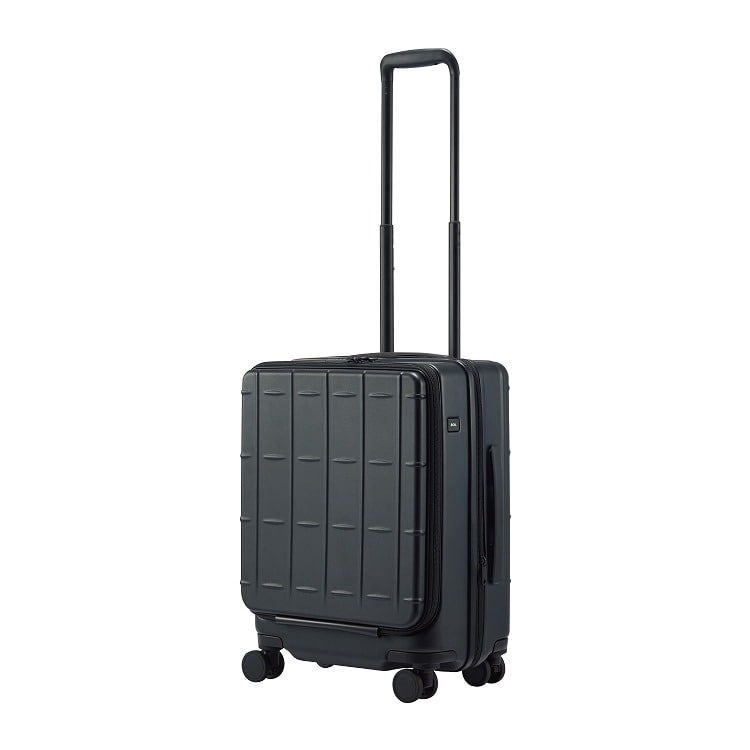 - 4輪(双輪・静音タイプ)/TSダイヤルファスナーロック/キャスターストッパー/フロントオープン式/エキスパンダブル/国内100席以上・国際機内持込み