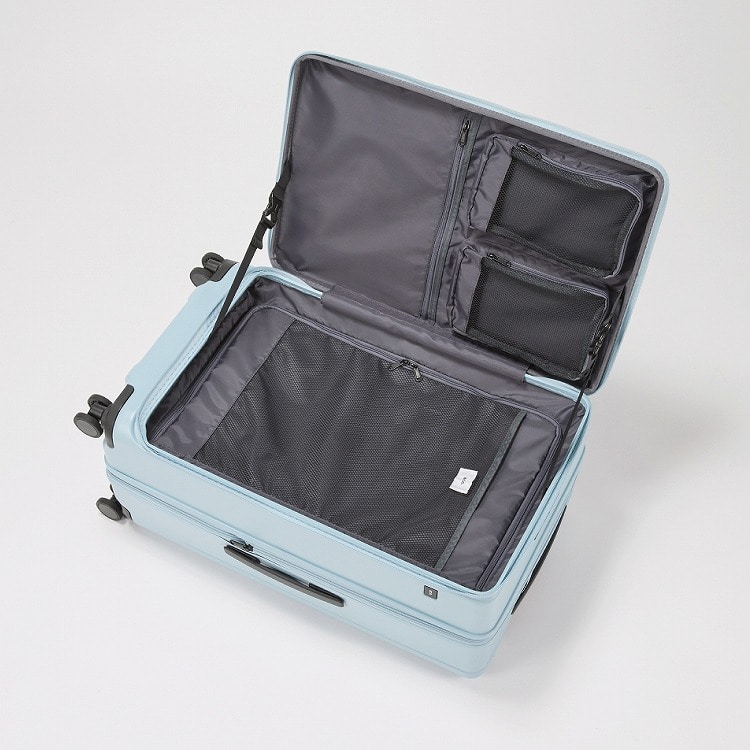 小分けに収納できる視認性の高いメッシュ生地のポケットや、上着やお土産などをクイックに収納できるポケットを搭載。