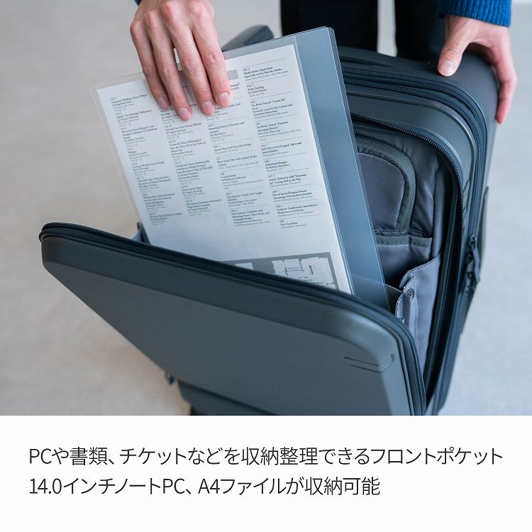 PCや書類、チケットなどを収納整理できるフロントポケット。