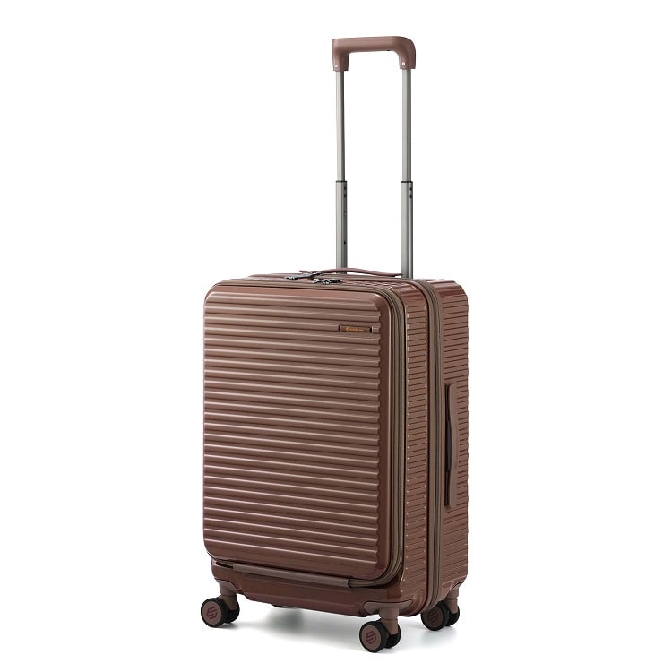 - 国内100席以上・国際機内持込み/4輪/双輪キャスター/TSダイヤルファスナーロック/フロントオープン/キャスターストッパー/サイドフック
