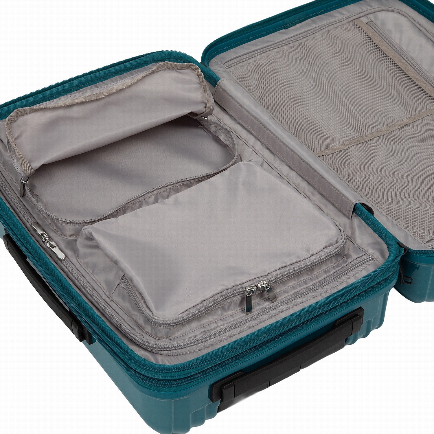 - スーツケース内部には引手のないジッパー部分がございます。こちらは修理用のメンテナンスファスナーとなり、収納スペースとしてはご利用いただけません。
