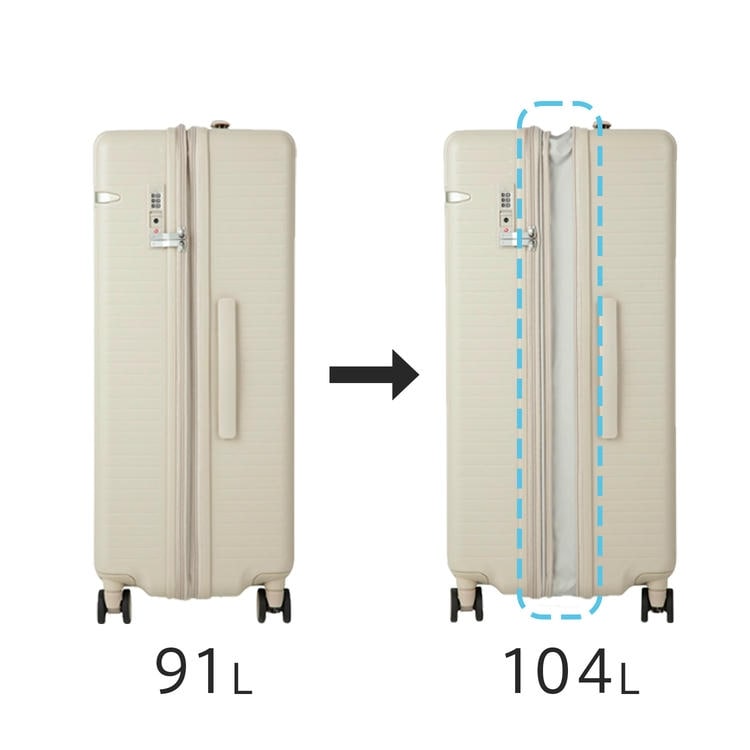お土産などで荷物が増えた時にも便利な容量拡張機能を搭載。