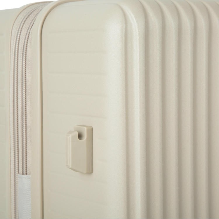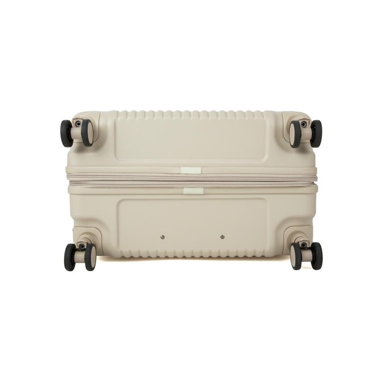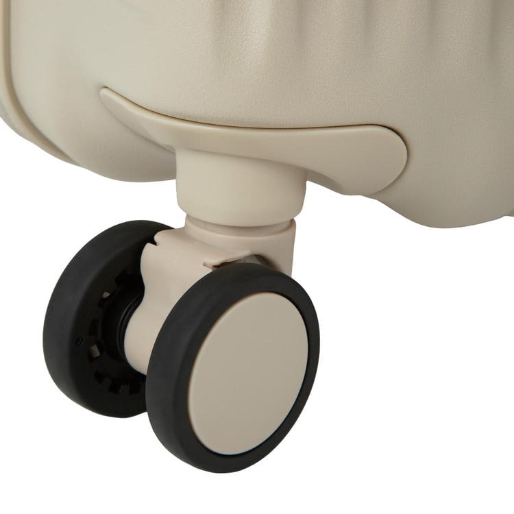 片側のサイドには横にしたときにスーツケースのシェル部分が地面につかないようにするグライド付き。