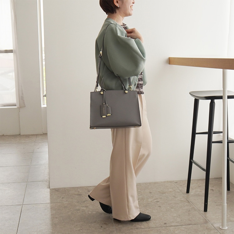 ショルダーベルト付きなので、その日のコーデや気分に合わせてハンドバッグ/肩掛けの2WAYでお持ちいただけるアイテムです。