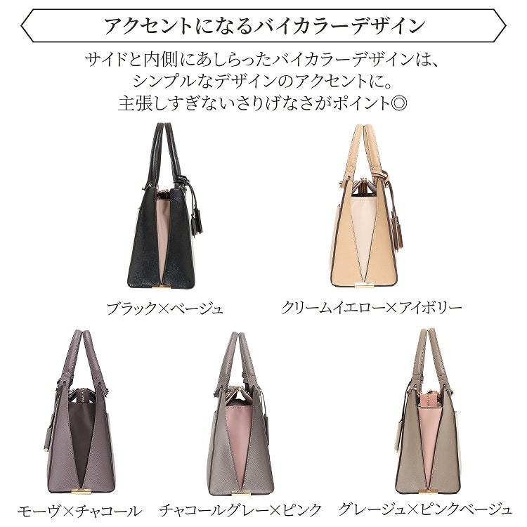 バイカラーデザインがおしゃれなハンドバッグ。