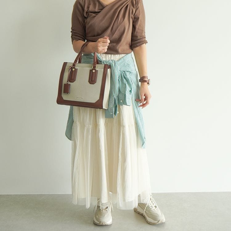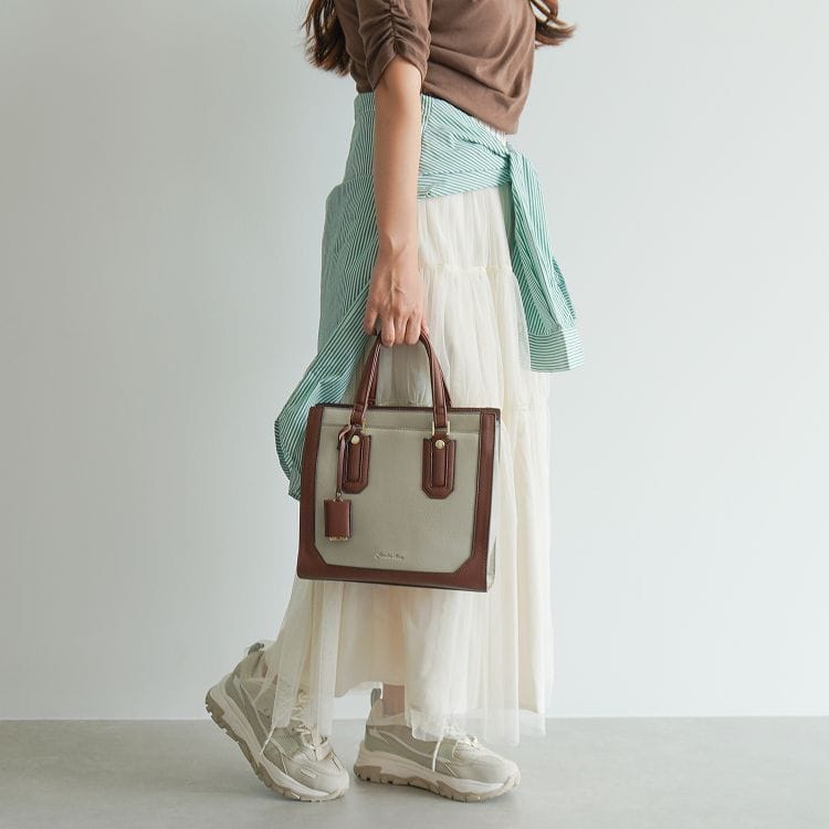 ふんわりと柔らかな合皮を使用したスクエアバッグ。