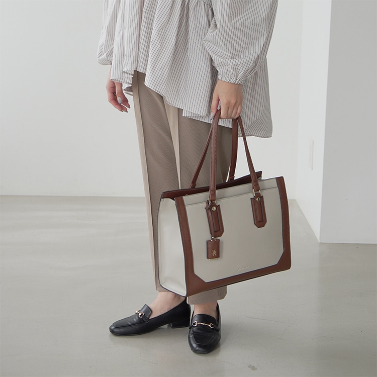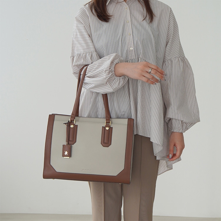 ふんわりと柔らかな合皮を使用したトートバッグ。