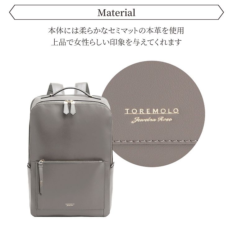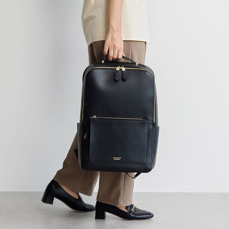柔らかでセミマットなレザーで、上品で落ち着いた印象に。