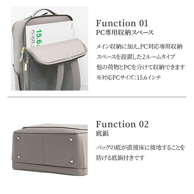 メイン収納スペースとPC収納スペースが分かれているので、荷物の整理整頓に便利です。