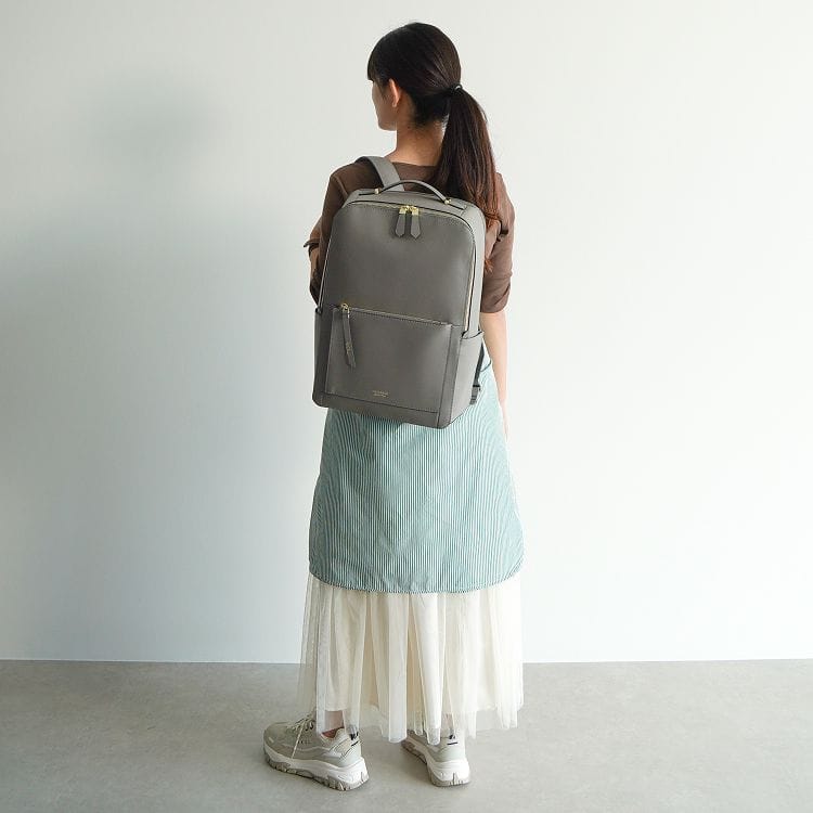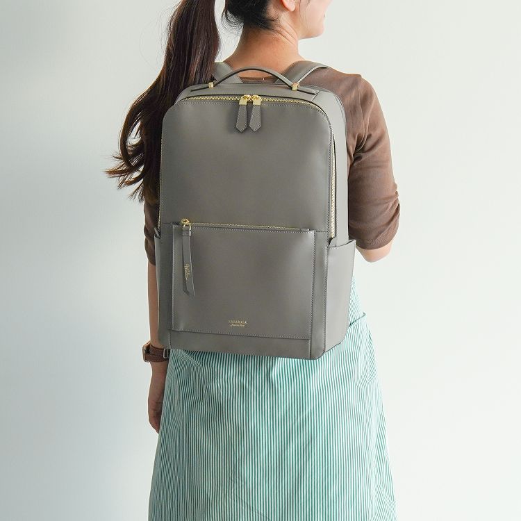 柔らかでセミマットなレザーで、上品で落ち着いた印象に。