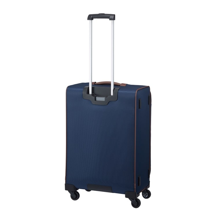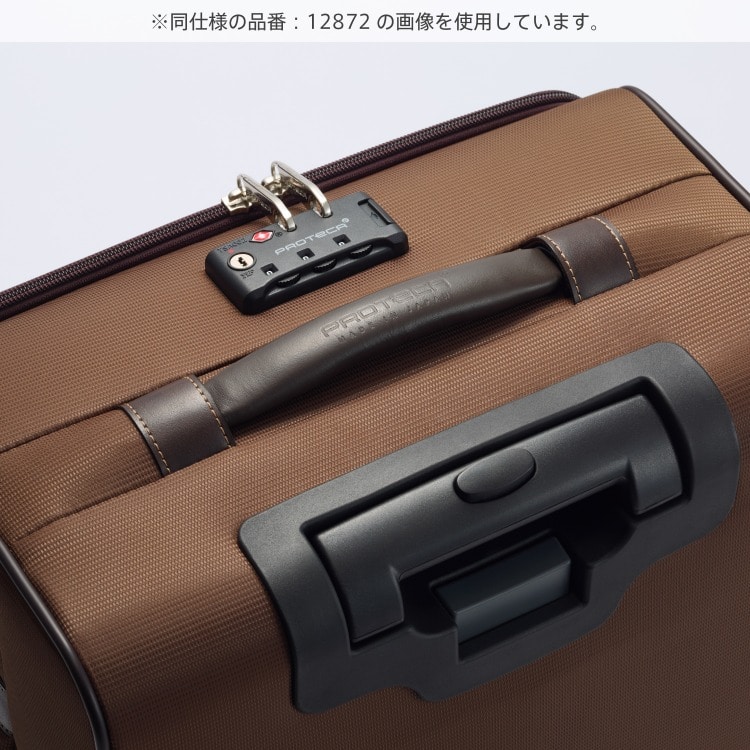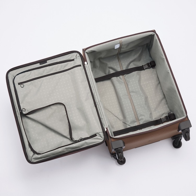 ひと針ずつ丁寧に縫いこんだボディや、随所にあしらった牛革の装飾。そんな気品を感じさせる、プロテカ『ソリエ スリー』に採用したのが、手元で簡単にキャスターを制止できるストッパー。揺れる列車や傾斜のある場所でも、しっかり固定できて便利です。しかも音の静かなサイレントキャスターを装備。動かないという安心感と、静かさという快適さを兼ね備えた機能的なラゲージです。