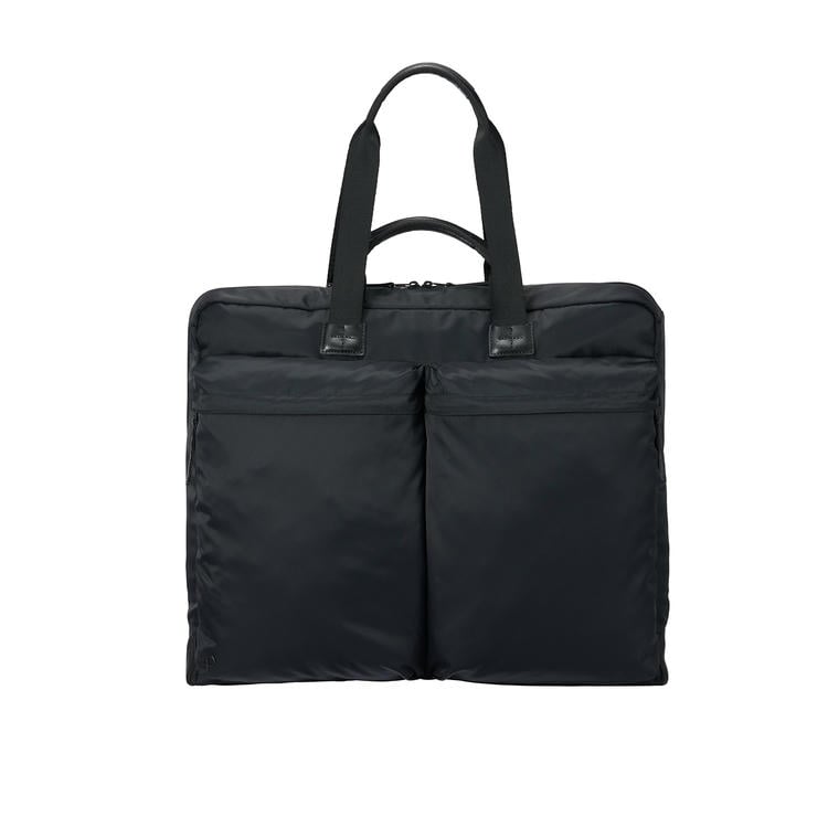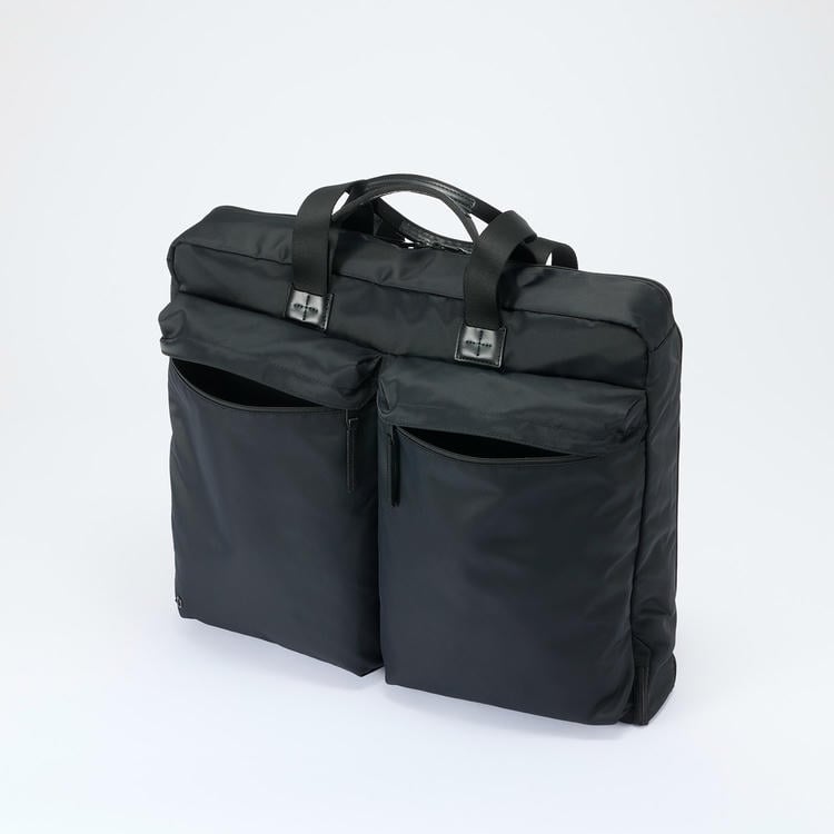 肉厚な国産ナイロンツイル生地に、同じく国内加工のカーフレザーを合わせ