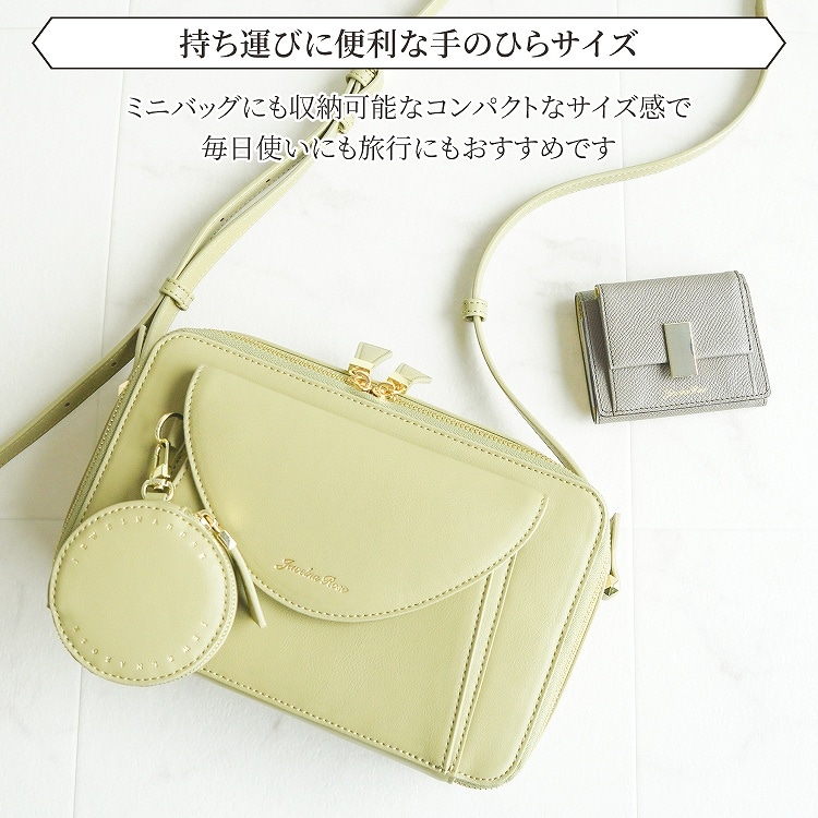 三つ折りのコンパクト財布は小さめのバッグでお出掛けしたい時や結婚式などのパーティーにもぴったり。