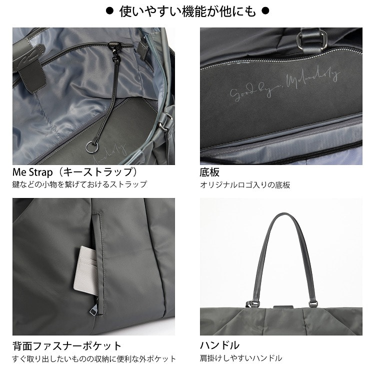 とっても軽くて大容量なので、通勤はもちろん、ジムや出張、旅行、ママバッグとしてなど、働く女性を全方位的に包括する汎用性の高さが嬉しいポイント。