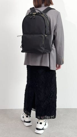 上品なパイピングとリボンディティールが特徴のきれいめリュック。