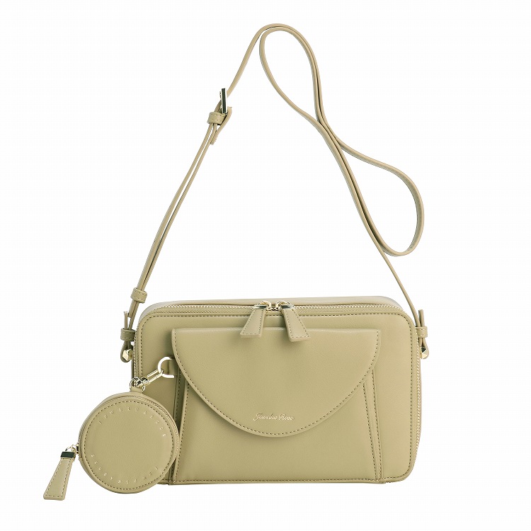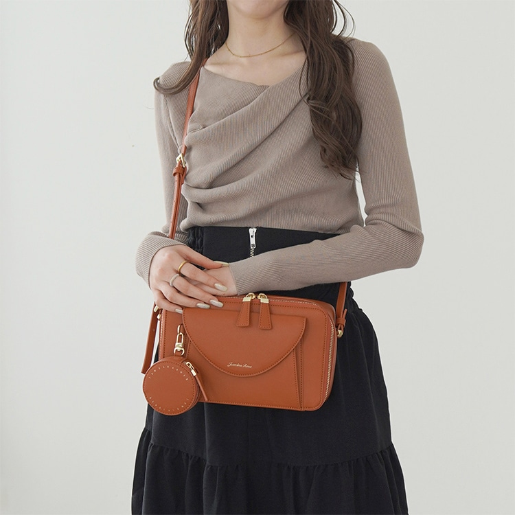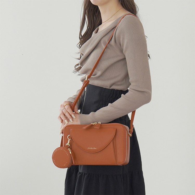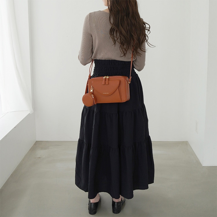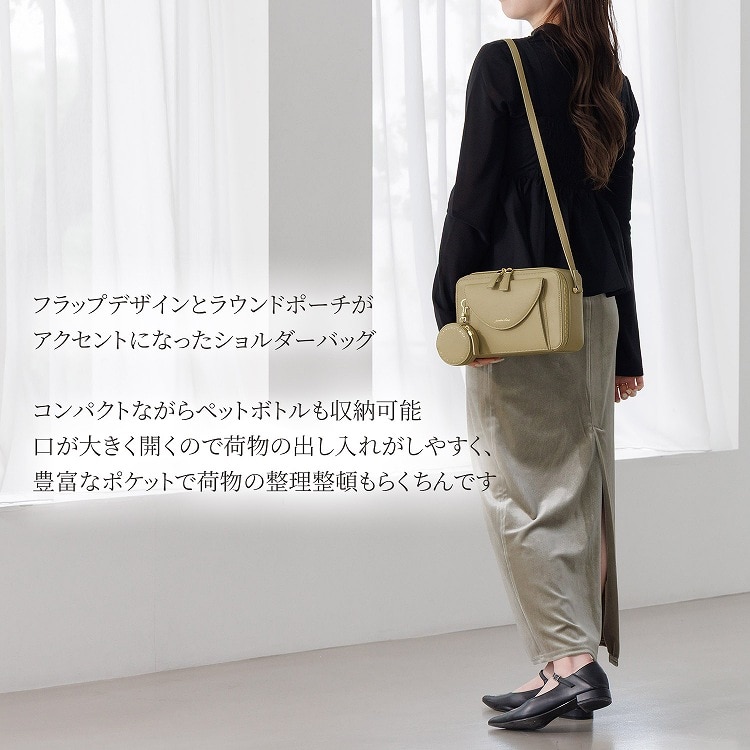 フロントにあしらったフラップが印象的なショルダーバッグ。