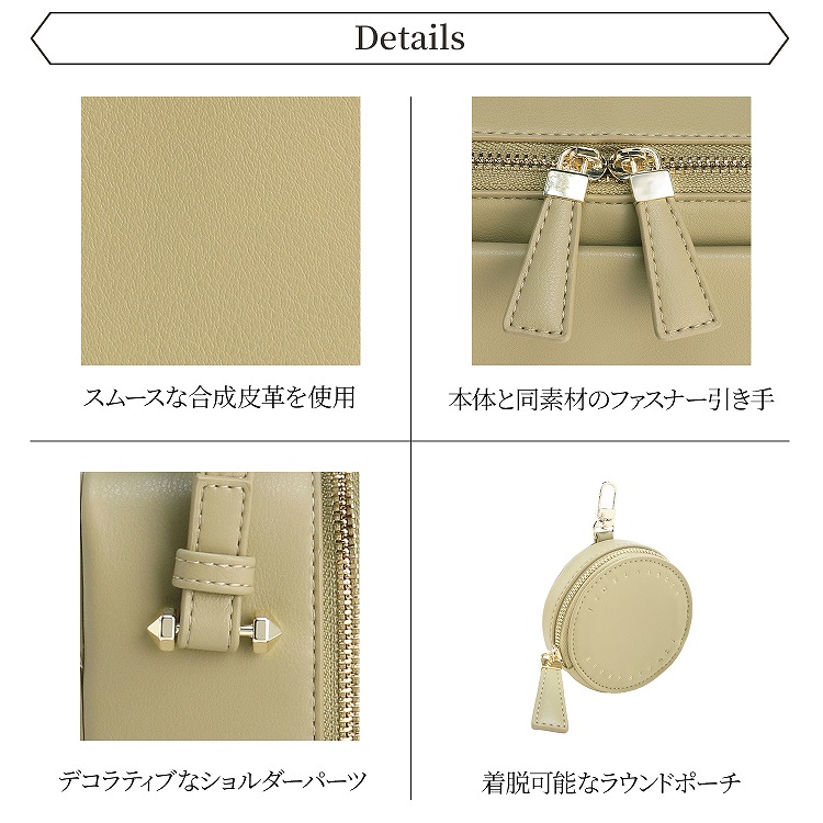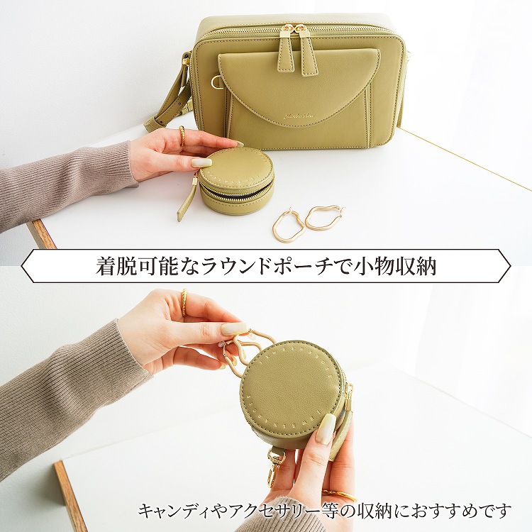 ハンカチやリップなど、すぐに取り出したい物をしっかりと収納できます。