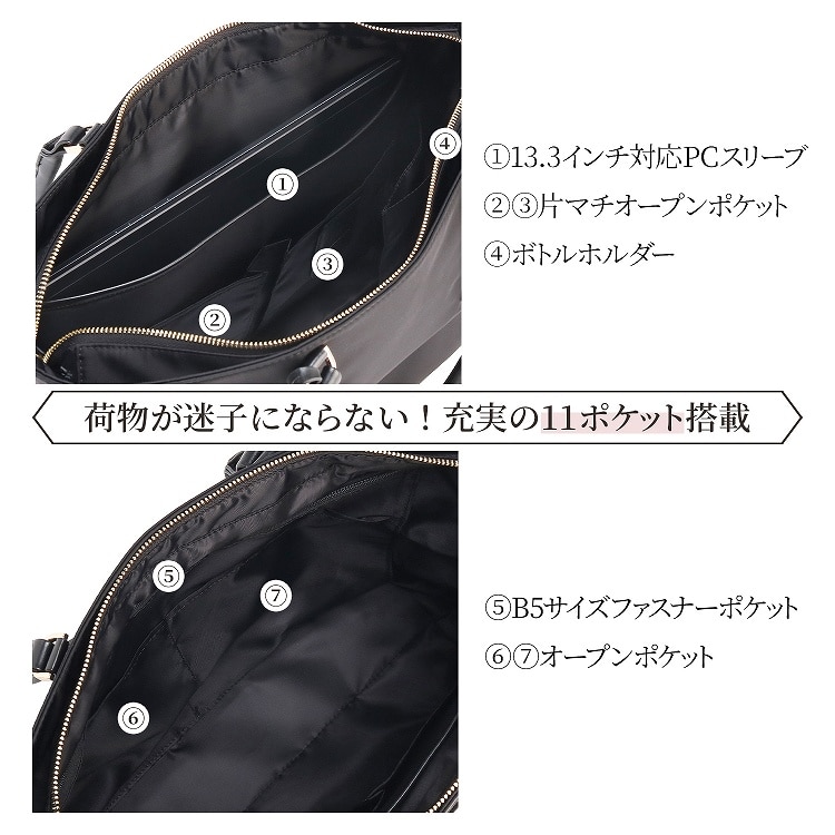 書類やPC、ペットボトルやお弁当、メイクポーチなど必要な荷物をしっかり収納してくれます。