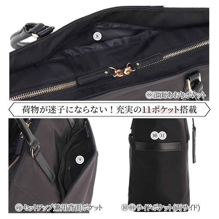 内装・外装ともにポケットが豊富なので荷物の整理整頓に便利です。