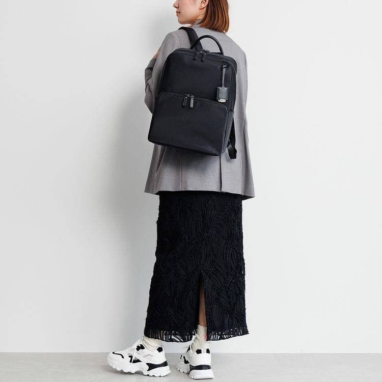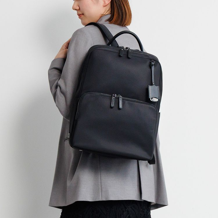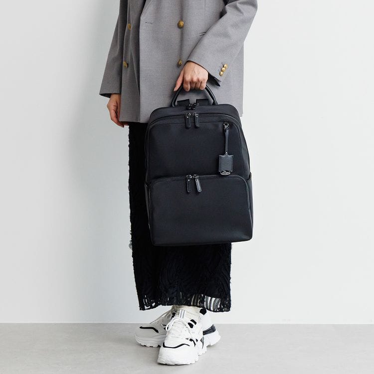 上品でミニマルな、すっきりとしたデザインが特徴のリュック。