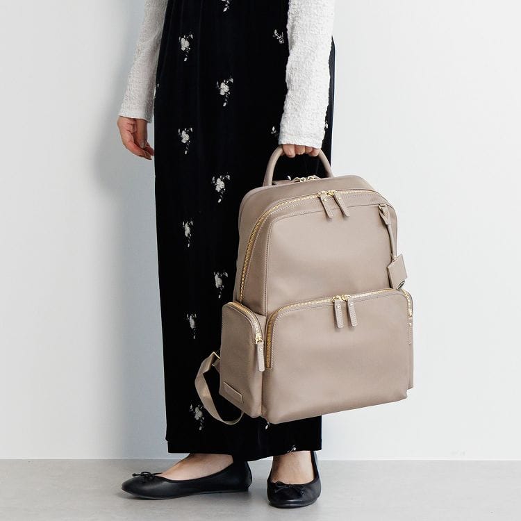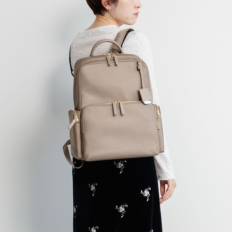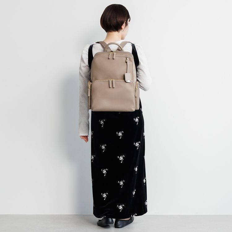 上品でミニマルな、すっきりとしたデザインが特徴のリュック。